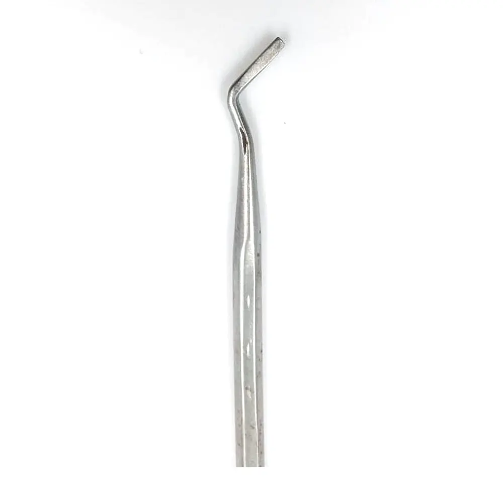 The instrument has a sharp, well-designed blade that allows controlled cutting and shaping. Its slightly curved design makes it easier to reach difficult areas inside the mouth, ensuring precise work even in tight spaces.