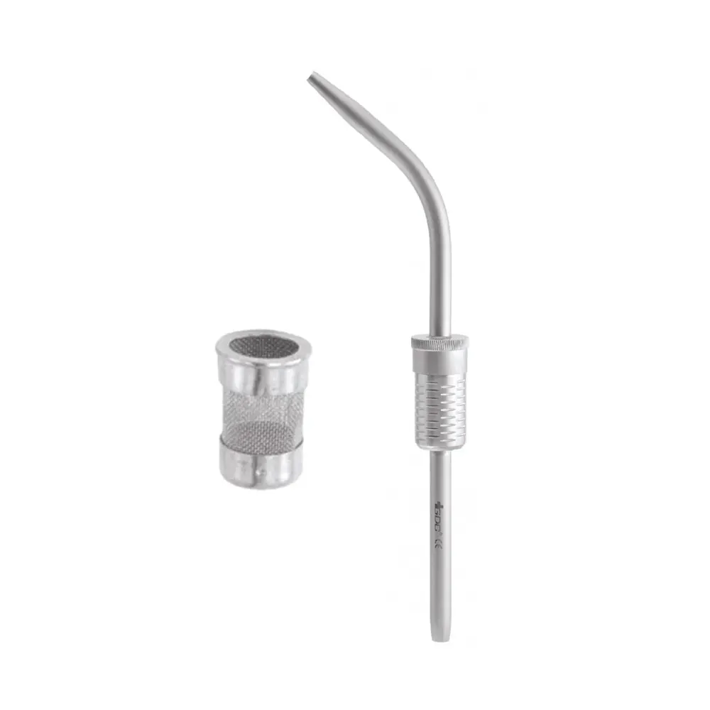 Suction with Filter Bone Collector (12mm) is a specialized instrument designed to enhance precision and efficiency during bone grafting and surgical procedures. This dual-function device integrates a powerful suction component with a built-in filter system that safely collects valuable bone particles while clearing fluids from the surgical site.