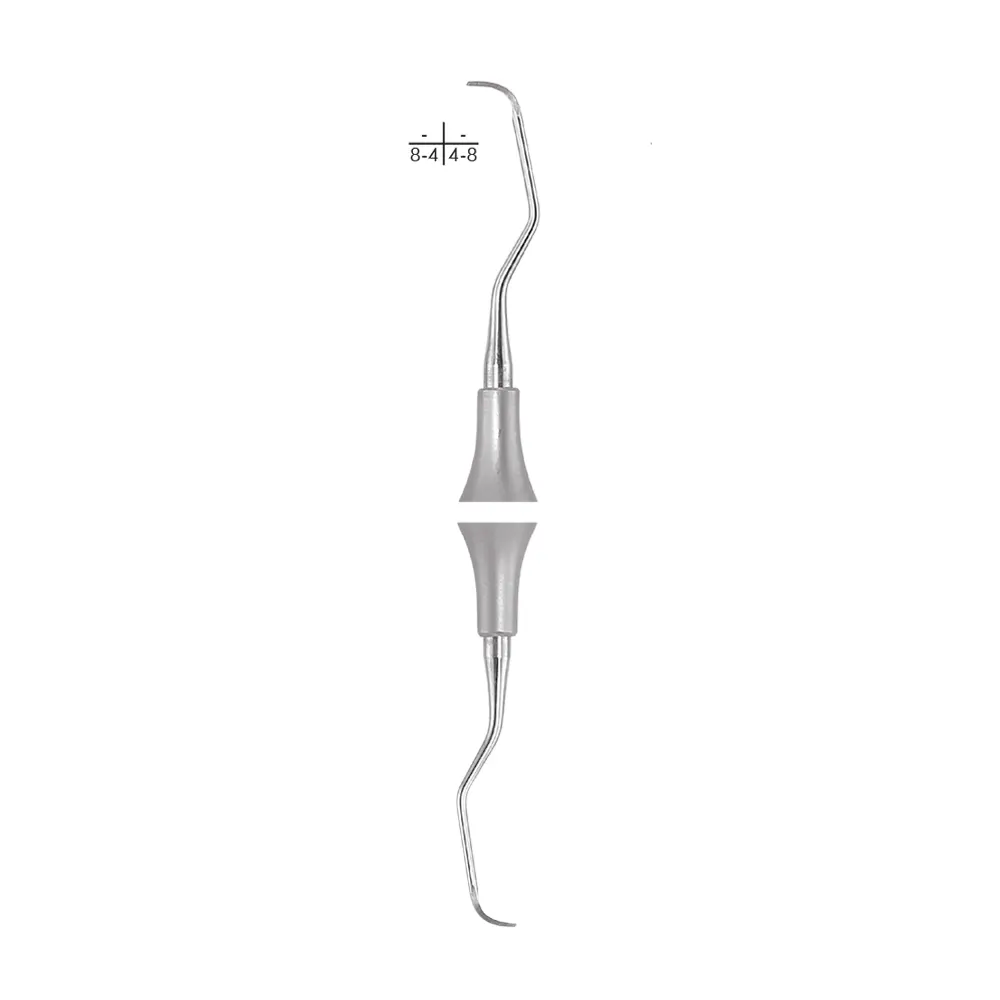 Engineered with a precise 90-degree angle between the terminal shank and blade face, this curette allows effective adaptation on both mesial and distal surfaces without the need to change instruments. Its thoughtfully angled shank improves reach and visibility in deep or difficult-to-access areas, supporting efficient scaling and debridement.