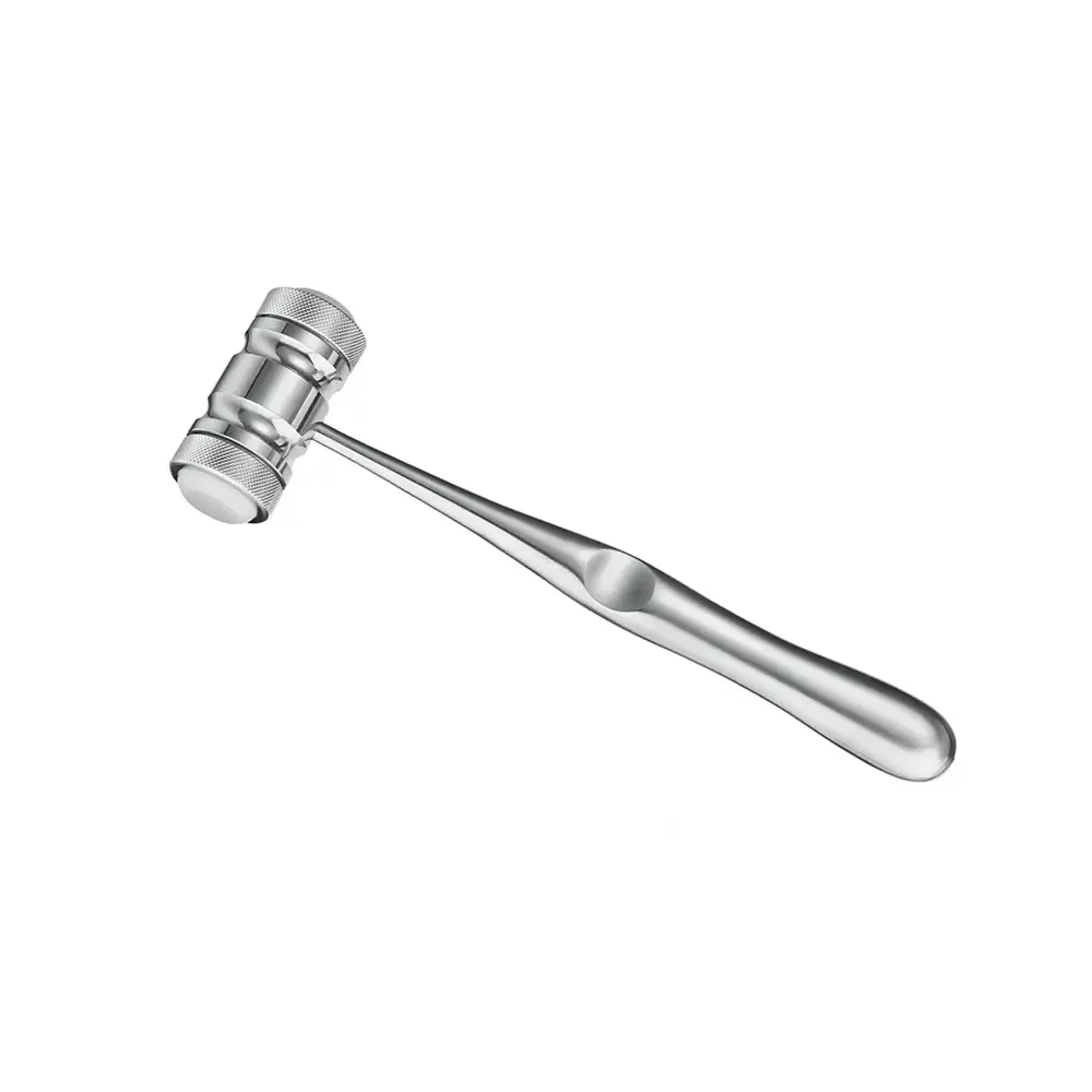 Equipped with replaceable plastic disc surfaces, the mallet effectively reduces vibration and shock transfer, ensuring smoother and safer instrument manipulation during bone contouring or other delicate surgical procedures.