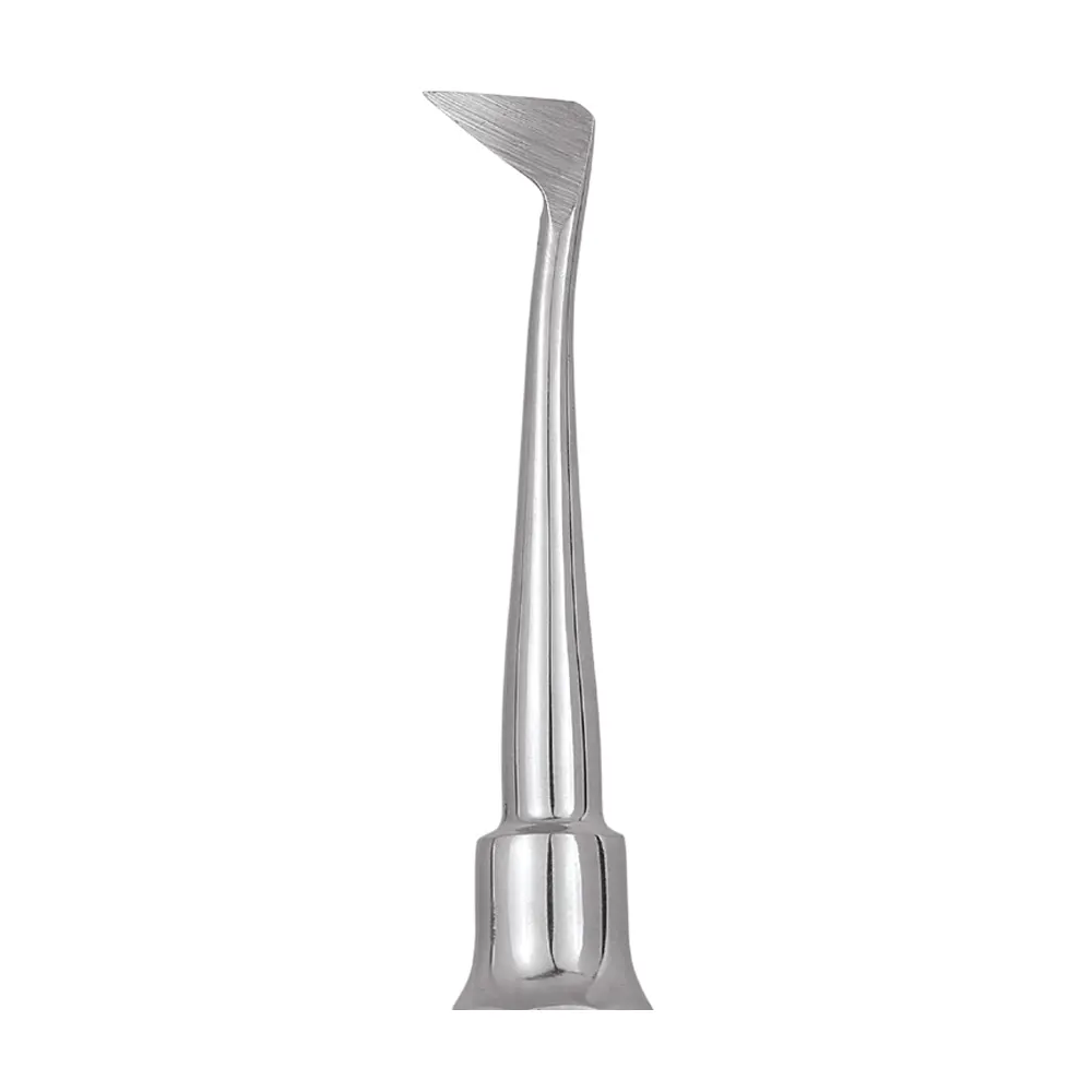 During use, the elevator gently separates soft tissue and helps release the periodontal attachment around the tooth or root, allowing smoother elevation with reduced stress on surrounding structures. The balanced, ergonomically shaped handle offers a secure and comfortable grip, enabling clinicians to maintain excellent control throughout the procedure.