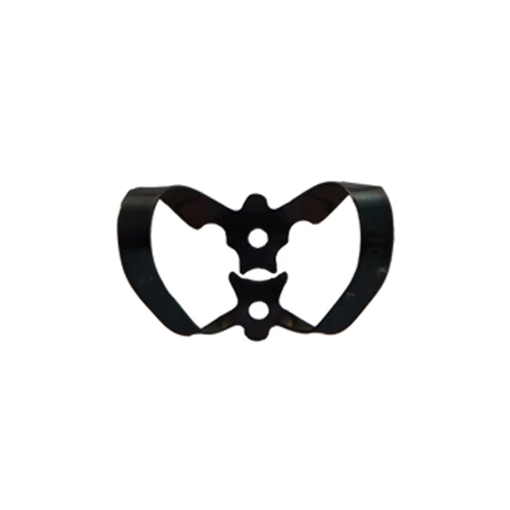 GDC Rubber Dam Calmps # Black Line (RDCB210) is designed to securely hold a rubber dam in place around the cervical area of exposed anterior teeth, helping maintain a clean and dry working field during dental procedures.
