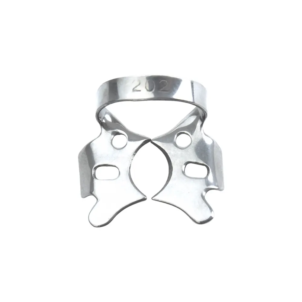 Featuring flat and broad jaws, the Adult 202 clamp is particularly well suited for large lower molars, allowing it to adapt comfortably to the tooth anatomy and provide reliable retention. Its versatile design makes it a valuable instrument for restorative and endodontic procedures, supporting better visibility, enhanced control, and efficient workflow in dental practice settings.
