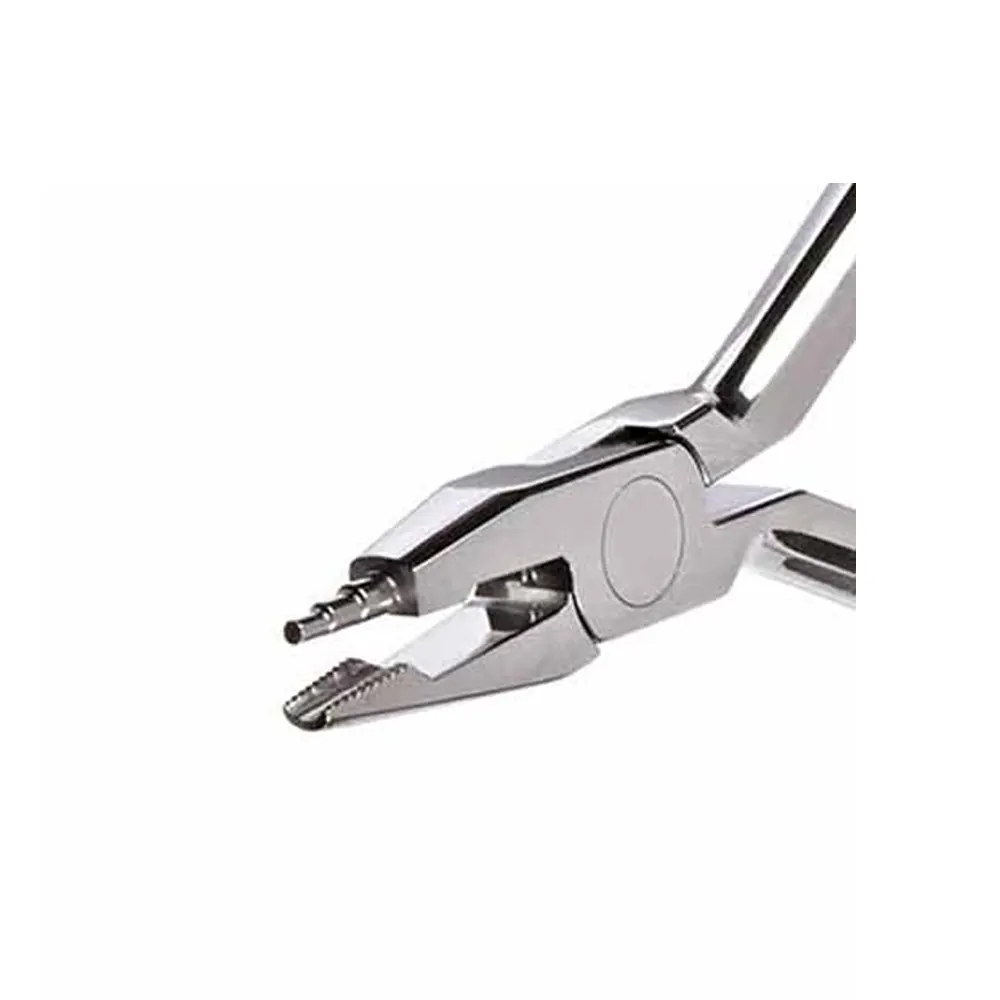 The micro-serrated beaks provide a secure grip on the wire, effectively preventing slippage while ensuring non-marring performance. This makes the plier ideal for creating small helical loops, performing intraoral tip-back bends, and forming precise 90-degree angles on stainless steel wires. It is especially suitable for working with square and rectangular archwires, including utility archwires, and for de-torquing archwire ends.
