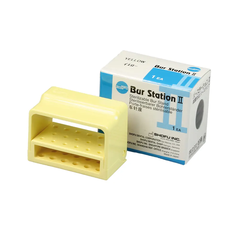 The Shofu Bur Station II is a practical and compact bur stand designed to keep your contra-angle (CA) and friction-grip (FG) instruments organized and ready for use. Built for daily clinical workflow, it offers safe storage, easy access, and reliable sterilization compatibility making it an essential tool for any dental setup.