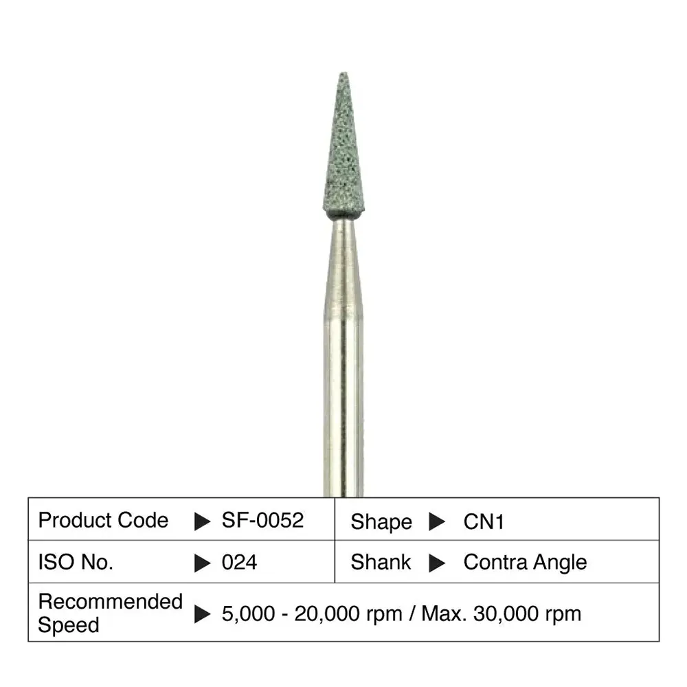Dura-Green Stones are excellent for fast contouring and finishing. This is compatible with Contra angle(CA) handpieces. These stones are also available in compatibility with Straight Handpiece (HP) and Friction Grip(FG) shanks.
