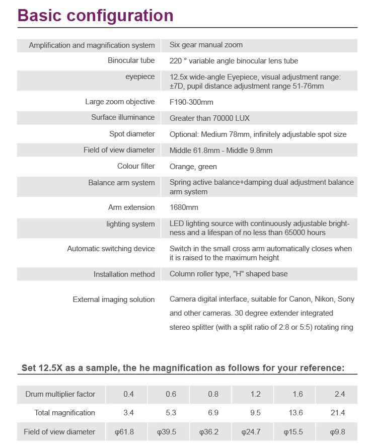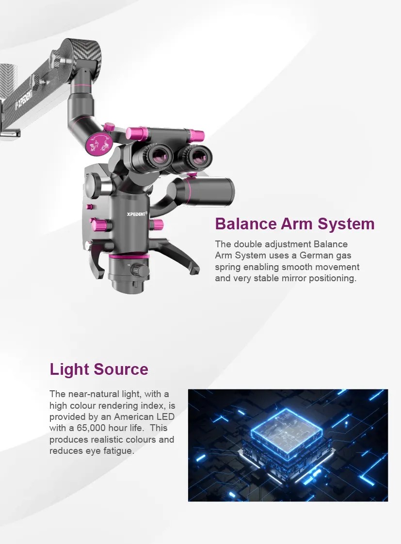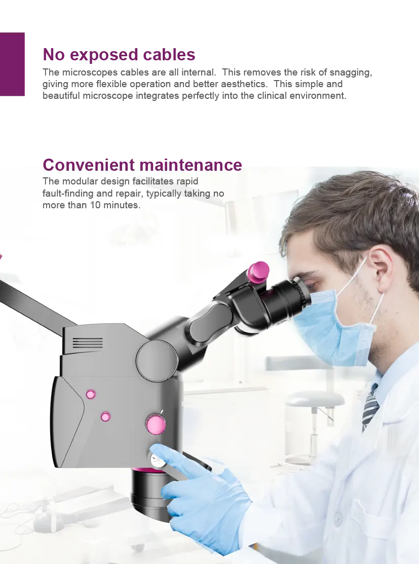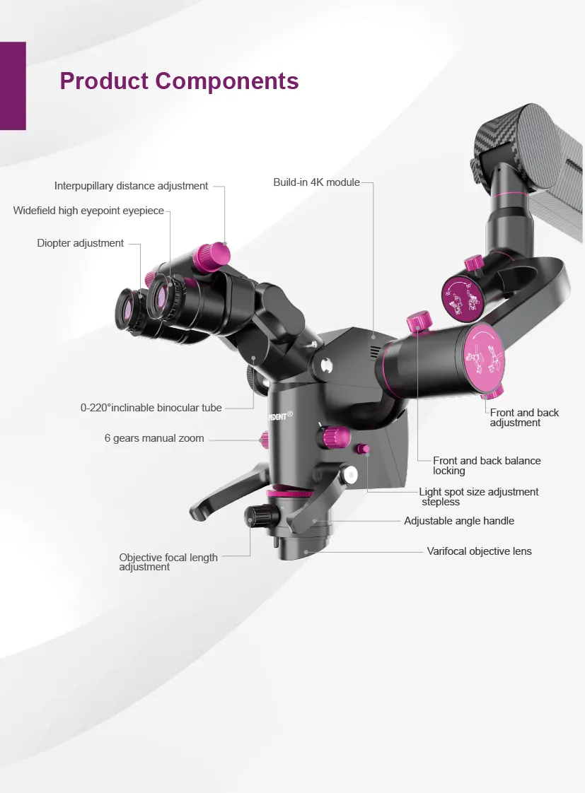 - Illumination: Integrated LED light source with high-power coaxial illumination for an unobstructed, bright view of the operating field.